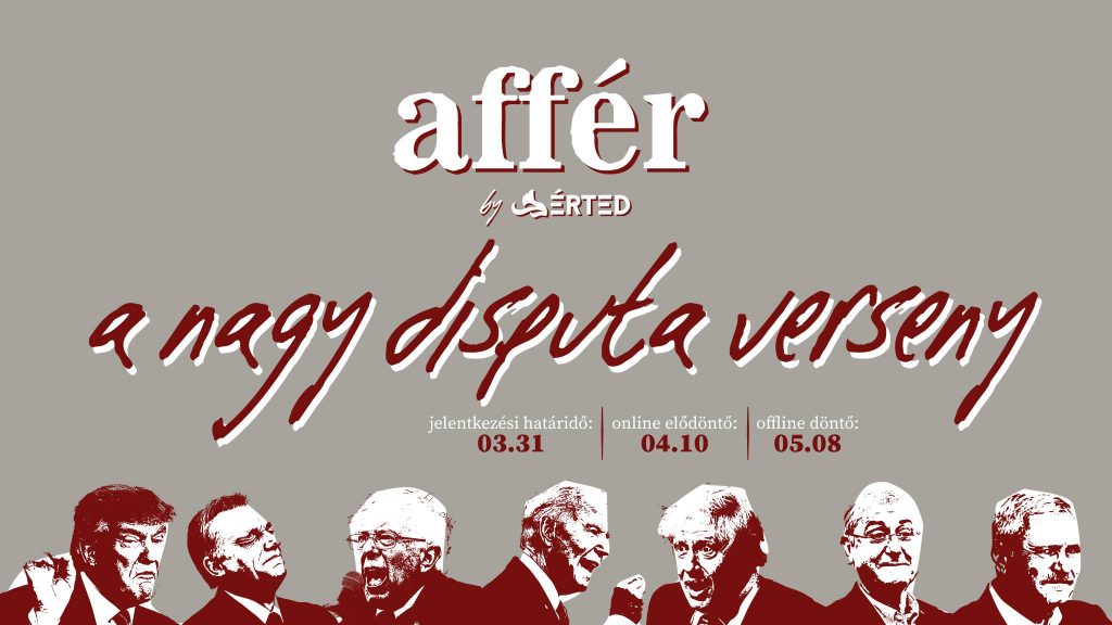 Az Affér legújabb eseményén nincs pro és kontra oldal. Az esemény egy beszélgetésnek ad teret, ahol mindenki megoszthatja gondolatait, meglátásait a témával kapcsolatban. Ettől függetlenül a vitázás szabályairól lehetőséged van többet van megtudni: a meglátások megfogalmazását követően kötetlenül fogunk arról beszélgetni, hogy a gondolatainkat hogyan alakíthatjuk át vitaképes érvekké.